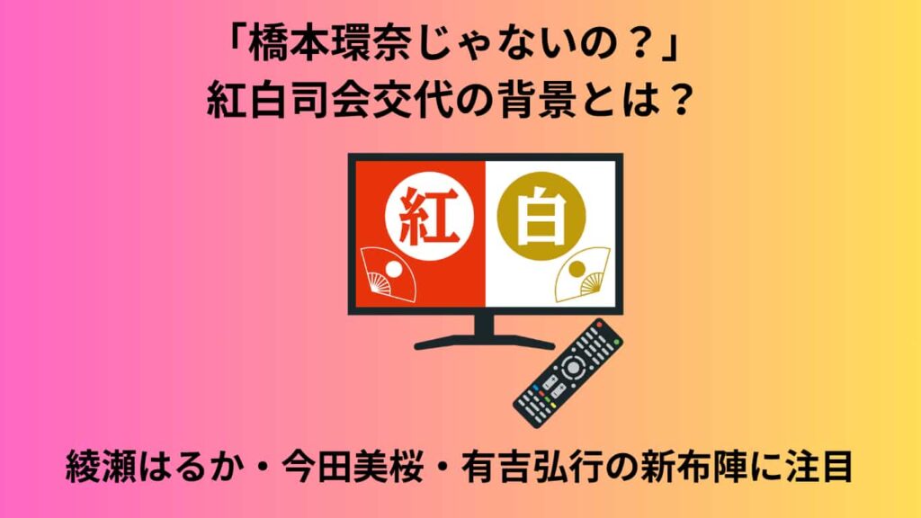 「橋本環奈じゃないの?」紅白司会交代の背景とは?綾瀬はるか・今田美桜・有吉弘行の新布陣に注目