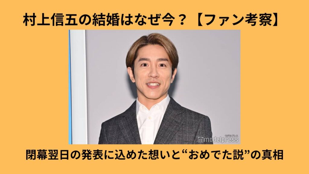 村上信五の結婚はなぜ今?閉幕翌日の発表に込めた想いと“おめでた説”の真相【ファン考察】