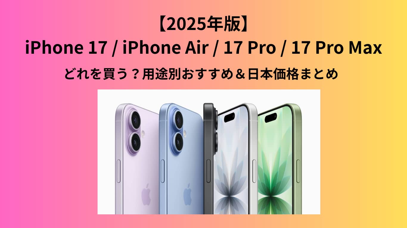 ラインナップはiPhone 17 / iPhone Air / iPhone 17 Pro / iPhone 17 Pro Maxの4機種です。