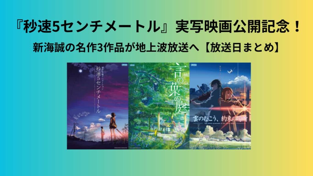 『秒速5センチメートル』実写映画公開記念!新海誠の名作3作品が地上波放送へ【放送日まとめ】