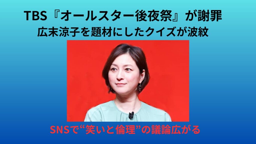 TBS『オールスター後夜祭』が謝罪 広末涼子を題材にしたクイズが波紋|SNSで“笑いと倫理”の議論広がる