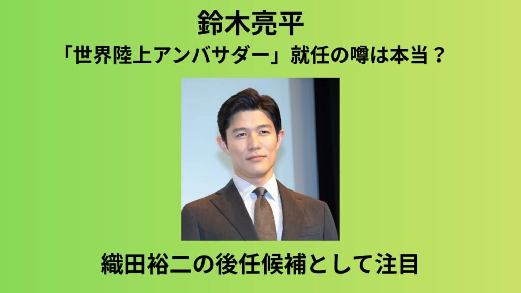 世界陸上の“顔”として長年親しまれてきた俳優・織田裕二さんが、ついにアンバサダーを卒業することを発表しました。 その後任として注目を集めているのが、俳優の鈴木亮... -