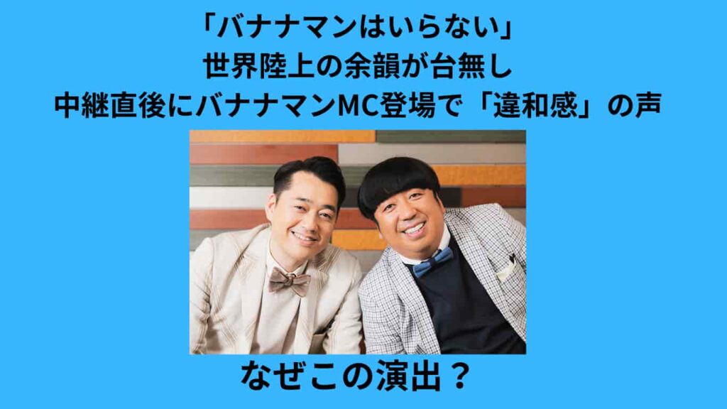 「バナナマンはいらない」世界陸上の余韻が台無し・中継直後にバナナマンMC登場で「違和感」の声 なぜこの演出?
