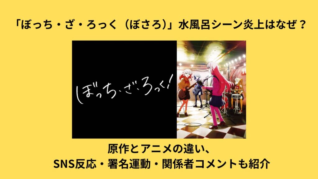 「ぼっち・ざ・ろっく(ぼさろ)」水風呂シーン炎上はなぜ?原作とアニメの違い、SNS反応・署名運動・関係者コメントも紹介