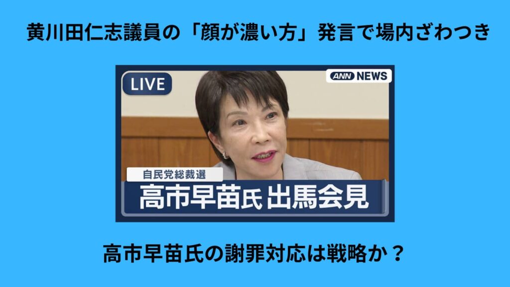 黄川田仁志議員の「顔が濃い方」発言で場内ざわつき 高市早苗氏の謝罪対応は戦略か?