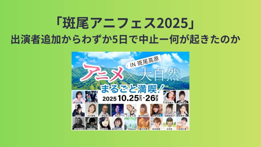 「斑尾アニフェス2025」出演者追加からわずか5日で中止──何が起きたのか