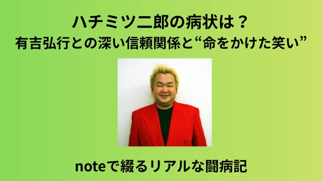 ハチミツ二郎の病状は?有吉弘行との深い信頼関係と“命をかけた笑い”noteで綴るリアルな闘病記