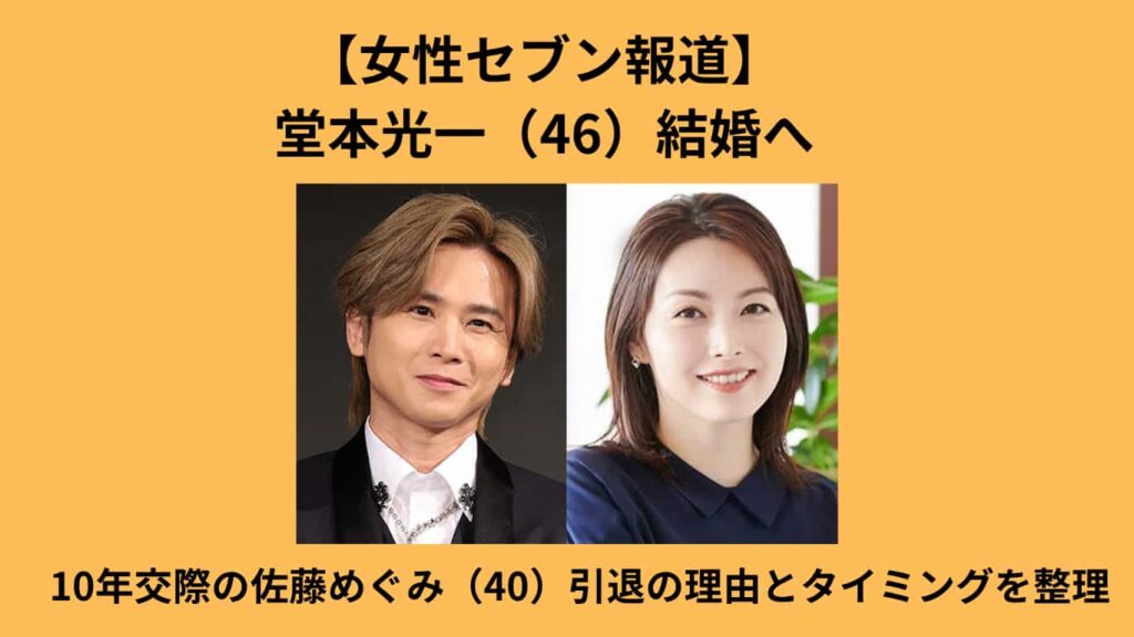 【女性セブン報道】堂本光一(46)結婚へ 10年交際の佐藤めぐみ(40)引退の理由とタイミングを整理