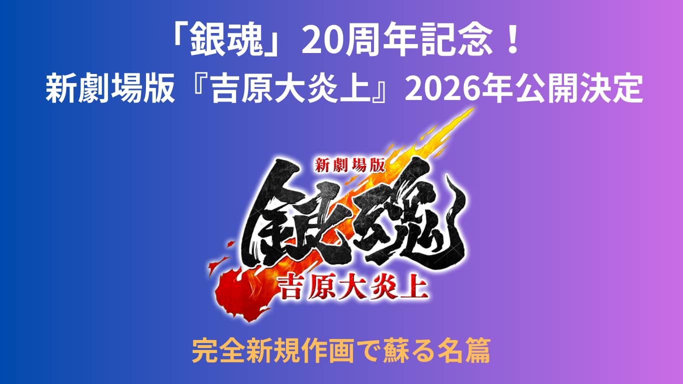 連載開始から20周年を迎えたこの節目の年に、完全新規作画で「新劇場版 銀魂 -吉原大炎上-」が制作され、2026年に全国公開されることが決定したのです。