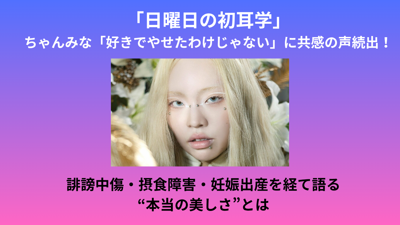 今日はTBS系「日曜日の初耳学」でラッパーのちゃんみなさんが語った「好きでやせたわけじゃない」という言葉について感じたことを書いてみたいと思います。