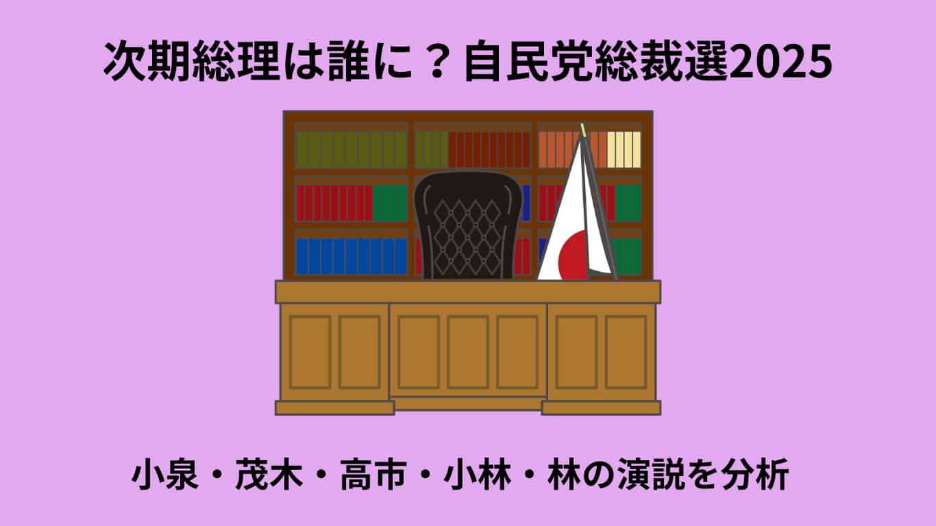 印象に残るフレーズで注目を集める小泉氏、データで裏付ける実務派の茂木氏、理念を強く訴える高市氏、生活者目線を重視する小林氏、調整型で安定感を示す林氏──本記事では5人の演説傾向を比較し、強みと弱みを整理しました。