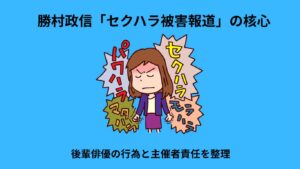 本稿では、①被害の訴えが向けられている相手(後輩俳優)の問題、②勝村さんの立場(飲み会の主催者・交際相手としてどう向き合ったか)を分けて扱います。