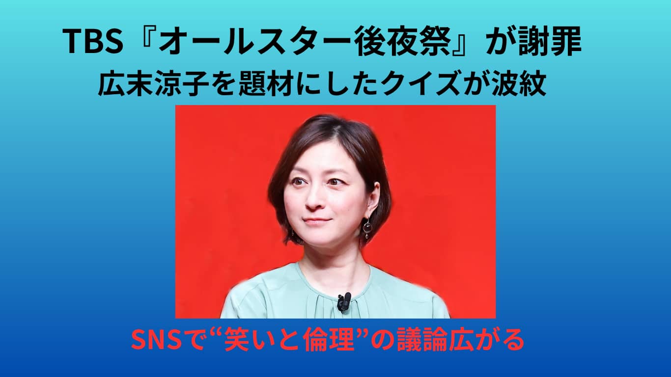2025年10月4日に放送されたTBSの特番『オールスター後夜祭’25秋』で、女優・広末涼子さんに関するクイズが放送され、大きな波紋を呼びました。
